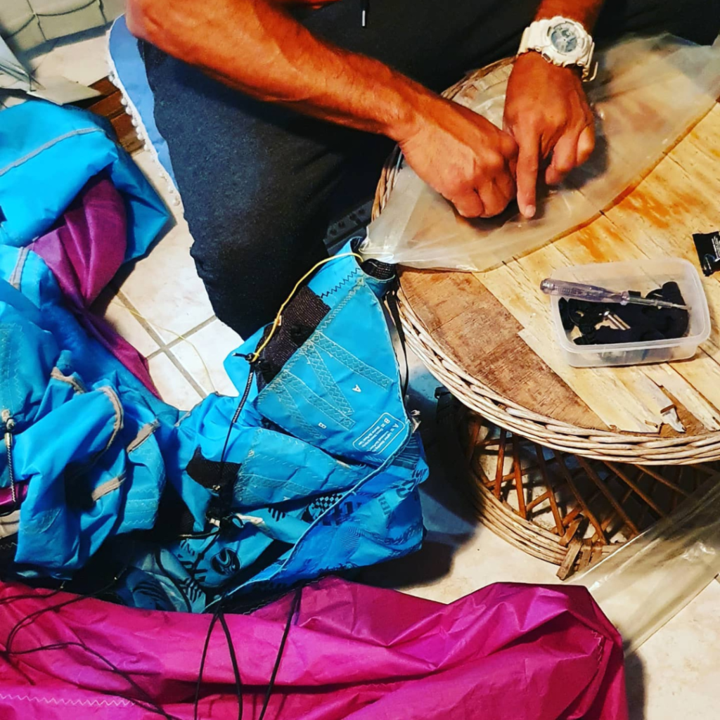 Com a prática, fui aprendendo a amar o Kite e, a partir dessa nova paixão, comecei a trabalhar dando aulas, vendendo e consertando materiais de Kite.